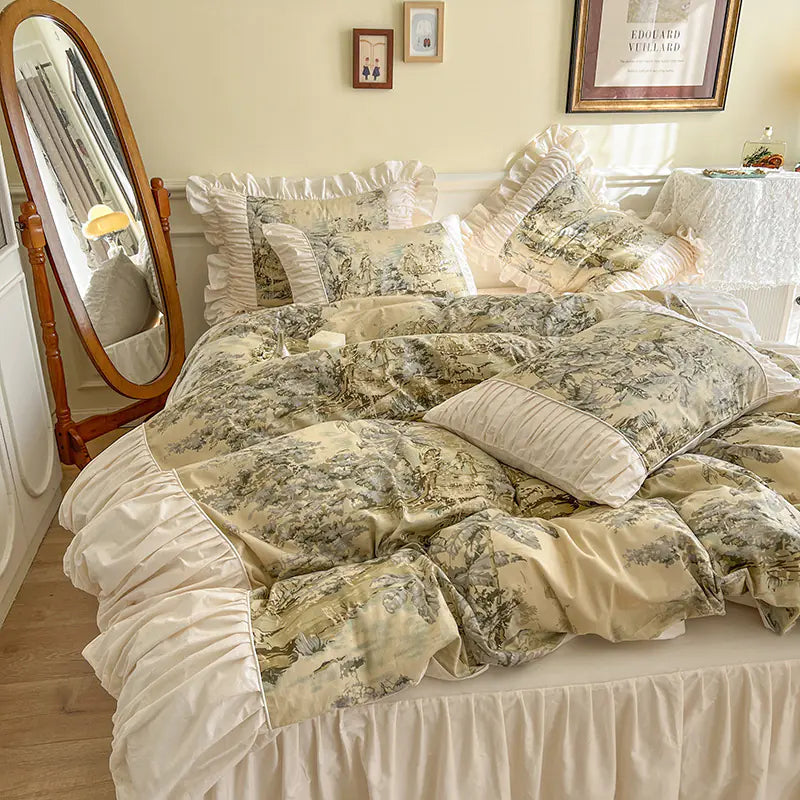 Transform your bedroom into a sanctuary of French romance with our exquisite four-piece bedding set. Crafted from pure cotton, this collection is designed to provide both comfort and style, making it the perfect addition to your home decor.
